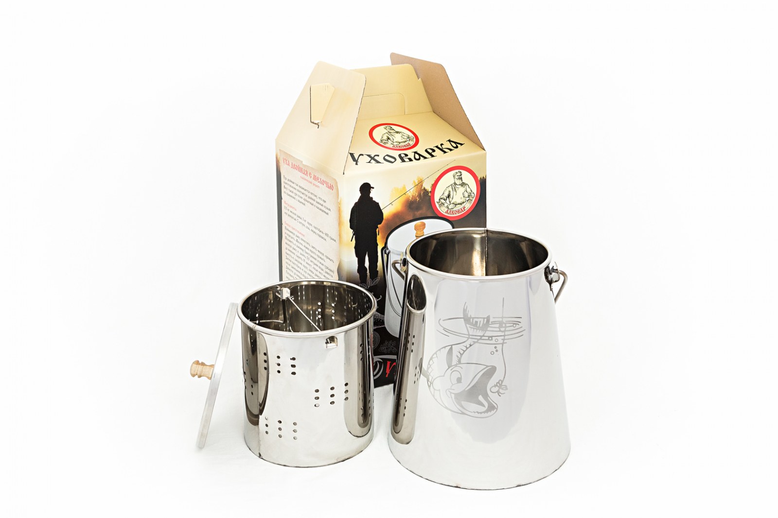 Уховарка предназначена для удобного приготовления вкусной ухи на природе. Ее необычная форма в виде конуса позволяет быстро нагреть воду за счет широкого дна и узкой горловины с плотно прилегающей крышкой. Такая форма не позволяет ухе быстро остыть, как это происходит в обычной кастрюле, а при переносе уховарки, ее содержимое не разольется.