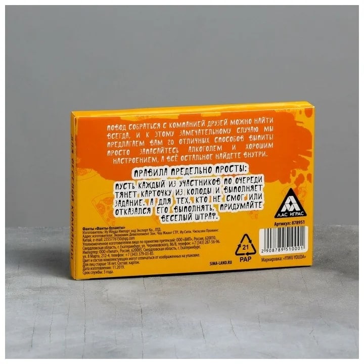 Купить игра для компании "фанты буханты" 20 карт от 100 руб. с доставкой до пункта выдачи в Нальчике. Интернет магазин ДекаМаркет. Оплата при получении.
